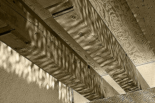 水盤からの光が古材の梁にあたりゆらめく...